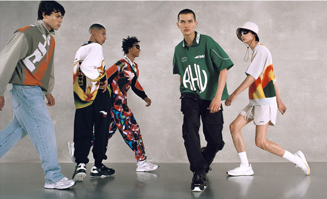 RHUとは「Redesigning Human Uniform (ユニフォームの再構築)」の頭文字であり、伝統的なメンズウェアの定義を覆し表現される自由なスタイル、つまり往来のスポーツウェア、ラグジュアリー、そしてストリートウェアの概念を超越したクリエーションを意味しています。