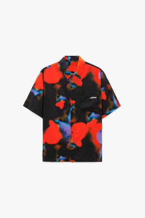 -抽象的なグラフィックのボタンアップシャツ x コットン素材のワイドレッグロゴトラックパンツ