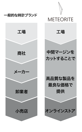 従来の腕時計販売の販売手法を見直し、卸や店舗販売などの中間マージンをカット