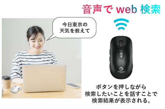 あなたの作業負担をとことん軽減できるよう、左側のボタンを押して話しかけるだけで検索が可能。キーボードでの入力がわずらわしい時にとても便利な機能です。