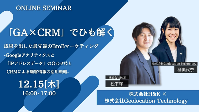 【12月5日(木)】株式会社Geolocation Technology×H&Kの共催ウェビナー「GA×CRMでひも解く、成果を出した最先端のBtoBマーケティング」を開催(無料)