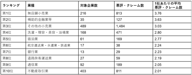 〜14,123社を対象にSNS等で投稿された口コミや評判から悪評・クレームを抽出し集計〜