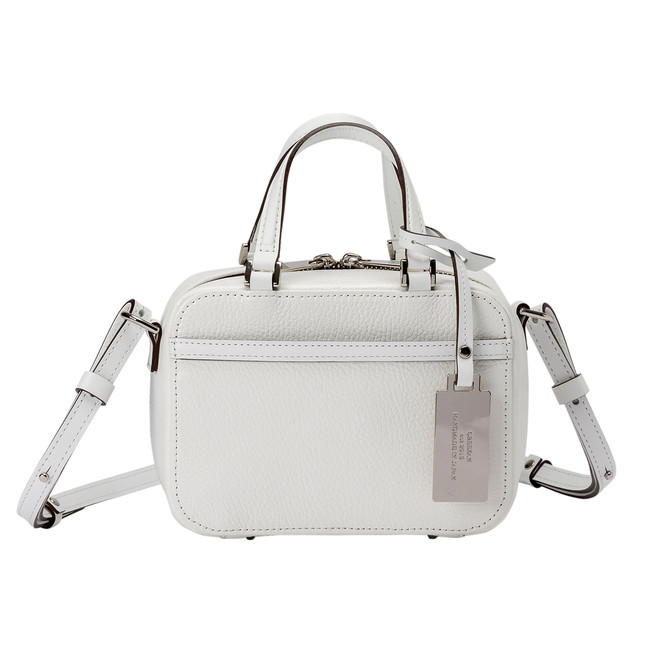 ブランド名を刻印したメタルパーツは、丁寧に高い精度で加工された高級感のあるオリジナルパーツ。 ホワイトのレザーと相まってバッグを際立たせます。ファスナーは、YKK社製でファスナーの貴婦人とも言われるEXCELLA(エクセラ:エレメントひとつひとつの全面に入念な磨きをかけた滑らかさが特徴)を使用しています。