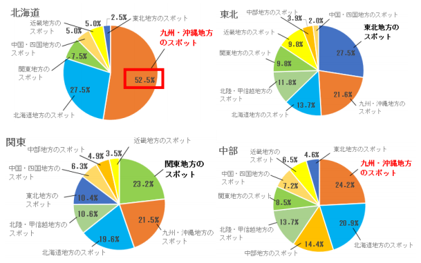 特に、北海道にお住まいの方は、半数以上の方が「九州・沖縄地方のスポット」を選択していました。