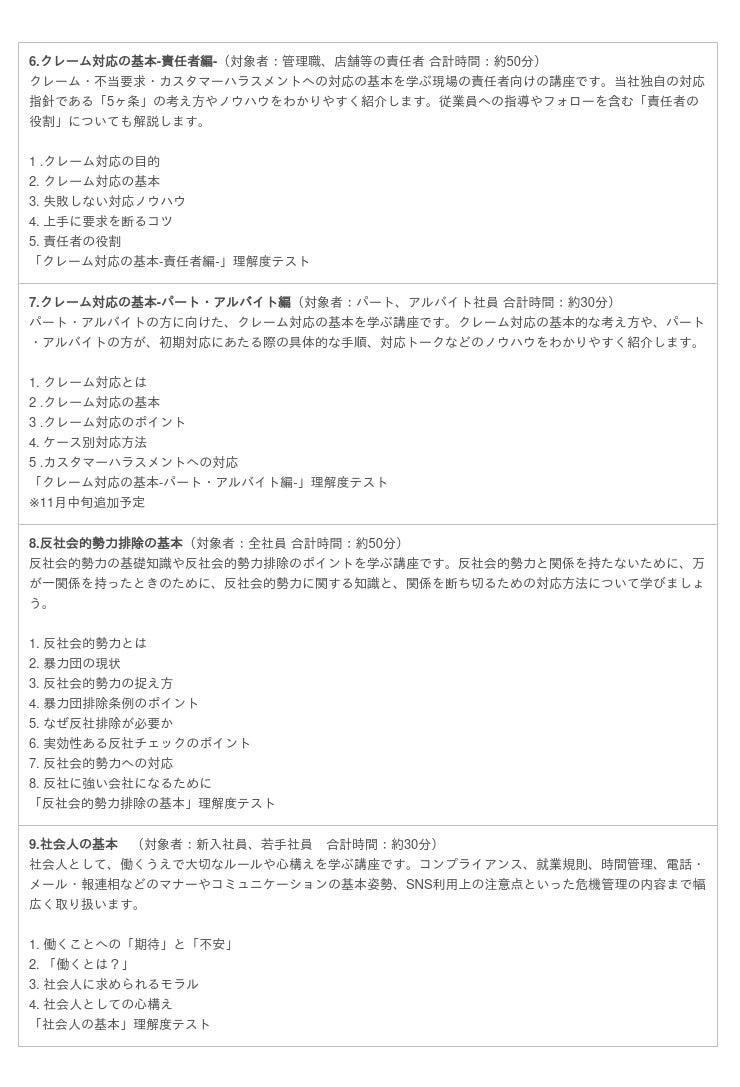(7 クレーム対応の基本-パート・アルバイト編-は11月中旬追加予定)