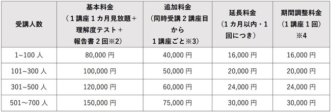 ※4:受講期間が複数ある場合は期間調整料金が発生。