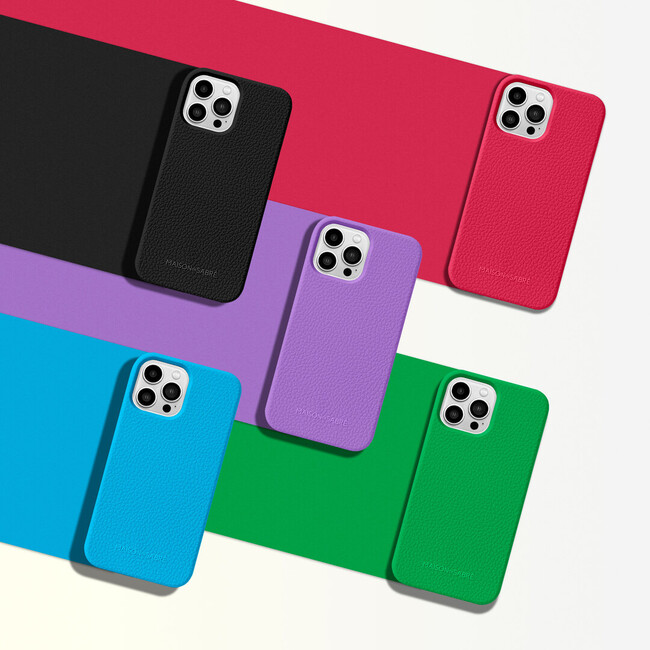 カラーバリエーションは、Jelligrain™スマホケースのためだけにデザインされたポップでジューシーなラインナップ。新色キウイグリーン、ラグナブルー、ヴィオラパープルに加え、定番色のブラックキャビアと渋谷フューシャが加わった全5色です。手に持つだけで自然と気分が上がるようなMAISON de SABRÉらしいプレイフルな色味を楽しめます。