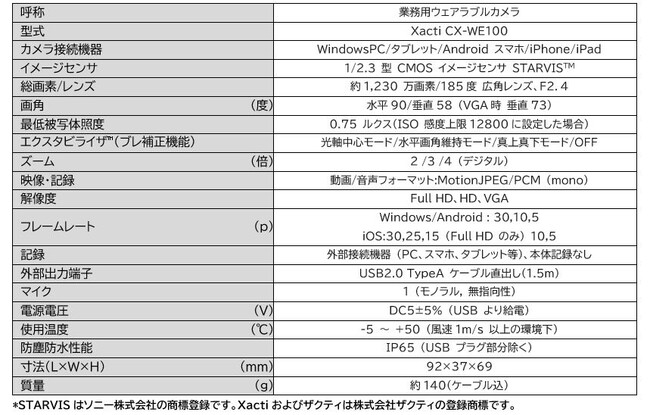 ■ウェアラブルカメラの仕様