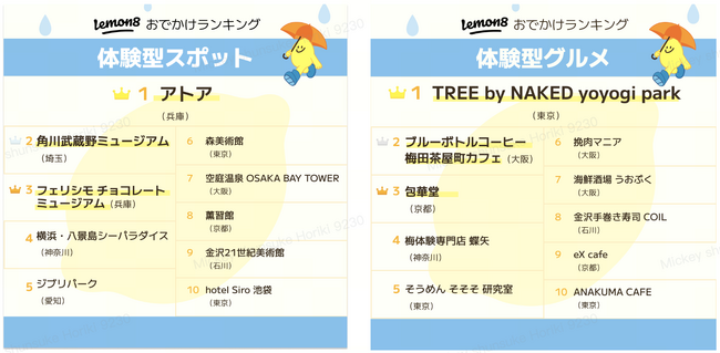 【梅雨でも楽しめる!】 Lemon8(レモンエイト) が「体験型スポット&グルメ」おでかけランキングを発表!約11万件の投稿データからNEXTトレンドも予測!
