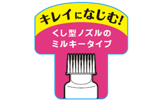 くし型ノズルのミルキータイプで、後頭部などもとかす感覚で簡単に染められます。また、大容量なのでロングヘアでも1箱で染められます。