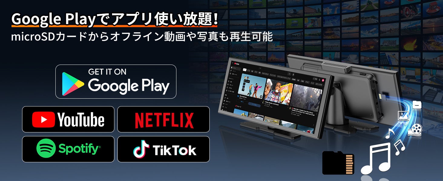 さらにGoogle Play対応のため、地図・音楽・動画など、必要なアプリを追加してカスタマイズできます。通勤ではナビ中心、休日は音楽や動画も-と、シーンに合わせた使い方が可能です。