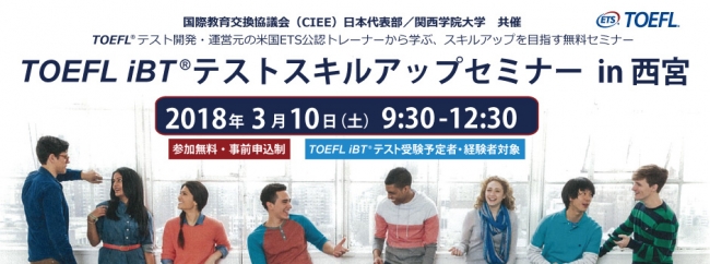TOEFL iBT(R) テストの学習を通じて、英語の4スキルを鍛えよう!「TOEFL iBT(R) テストスキルアップセミナー in 西宮」3月10日(土)関西学院大学にて開催!