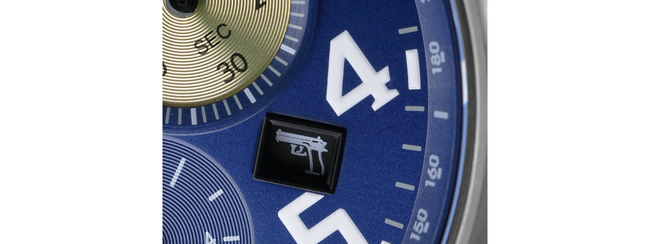 針とインデックスには強畜光が塗布され、夜間の視認性もしっかり確保。クロノグラフ針の畜光形状は、宇宙を駆けるソードフィッシュIIをイメージしており、暗闇でもなお楽しめるデザイン。