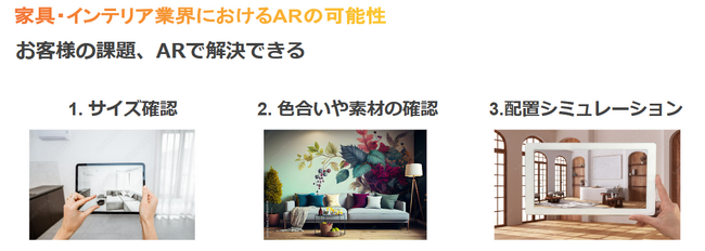 「家具のAR」はご自宅で家具の試し置きが簡単に可能になるため、そういった障壁をなくすことができ、より多くに消費者様がECで購入がしやすくなる世界を目指しております。
