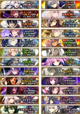 「メモリアルゴッドガチャ」は、「ゴッドクロニクルガチャ限定GODキャラクター14体」と「アルテイルエヴォリューションガチャ限定GODキャラクター5体」、「エレメントガチャ限定GODキャラクター5体」の24種類をはじめとする様々なGODキャラクターやアクセサリが含まれた、特別なラインナップにてご利用いただけます。