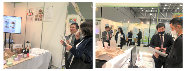 当社のブースでは、余剰になっている未利用食品原料に付加価値をつけて新しい食品を生み出す「長野アップサイクル・フード」の取り組みや、食品業界のDX化を推進するWebプラットフォーム「シェアシマ」についてご紹介しました。