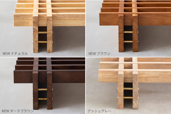 やさしい雰囲気で定番のナチュラル、落ち着いたブリックカラーのブラウン、シックな雰囲気のダークブラウンの3色が追加。カラーバリエーションの追加により、様々なインテリアスタイルに合わせることが可能となりました。