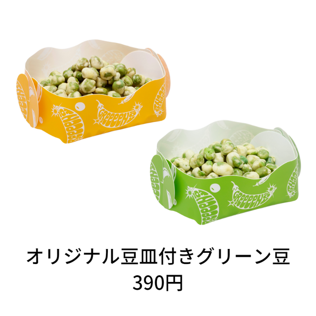 *「オリジナル豆皿付きグリーン豆」は、コラボメニューとしても販売します/1組につき1つ/色は選べません/なくなり次第終了