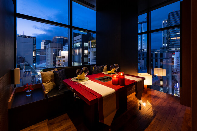 銀座一丁目駅すぐ、大人のためのラグジュアリーなビルの8階にある「銀座 焼肉R」は “五感で楽しむ美しい焼肉”をコンセプトに、銀座の美しい夜景を眺めながら、全国から選りすぐった和牛と旬の食材を使った趣向を凝らしたディナーコースをお楽しみいただけます。店内は銀座らしい落ち着きと華やかさが漂い、全席個室のため、カップルのデート、ご家族やお仲間でのお食事、記念日や接待などの特別なディナーに最適です。