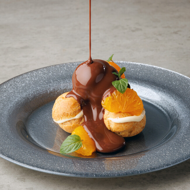 前菜にはキュートなユッケタルトと冬カブのスープを。極上の焼き物(5種類)を経て、メインは焼肉Rのアイコンとして人気のハンバーガー、今季はクランベリーコンフィチュールとカマンベールチーズの「スライダー」を。デザートにも季節感溢れるみかんのプロフィットロールをご用意しました。