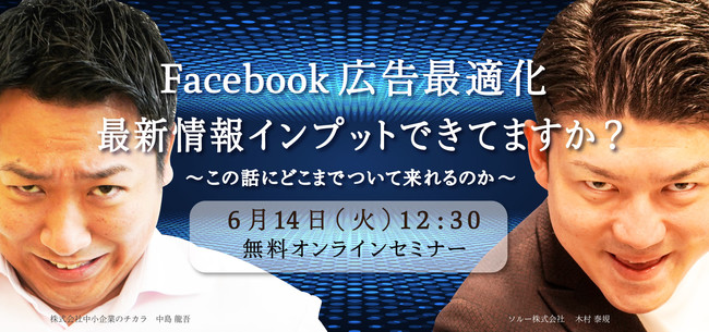 山下 佳介、以下「中小企業のチカラ」)( https://nippon-smes-project.com/ )は、広告サービスやインターネットに関する事業を行うソルー株式会社をお招きし、「Facebook広告の構造と最適化情報セミナー」を2022年6月14日(火)にてオンライン開催いたします。