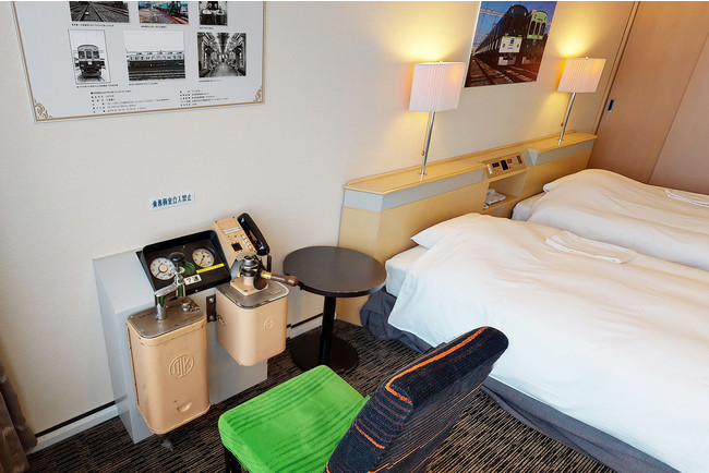 お部屋には、実際に使用されていた機器を用いて再現した本ルームオリジナルの運転台を設置。