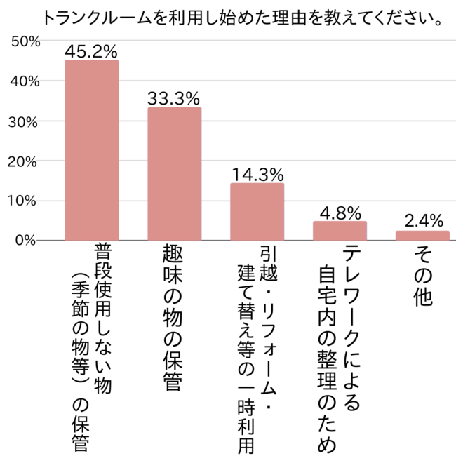 アンケートでは次に、トランクルーム利用を始めた理由について尋ねました。