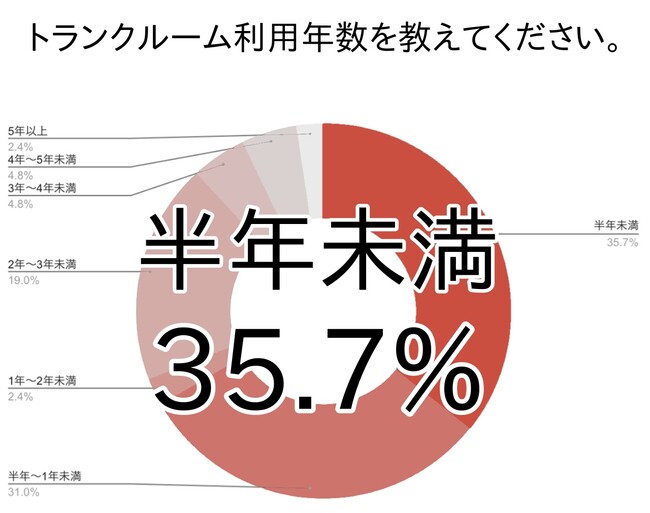 はじめに、アンケート回答者がどのくらいの期間トランクルームを利用しているのかを尋ねました。