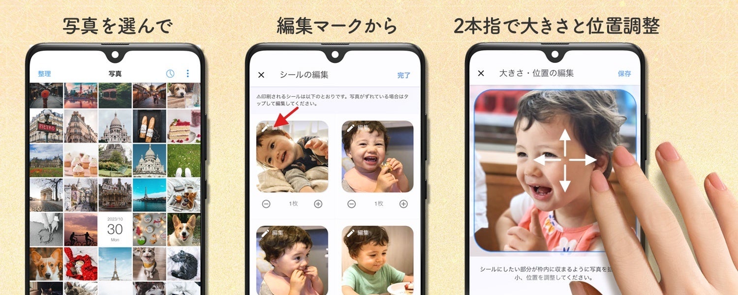 ・アプリ内でお好きな写真を選ぶと、自動でシールの枠内に配置されます。