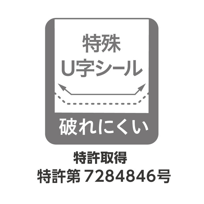 その境界部にかかる負荷を緩和し、底部全体で重さを支える形状のシールにすることにより破れにくさを実現しました。