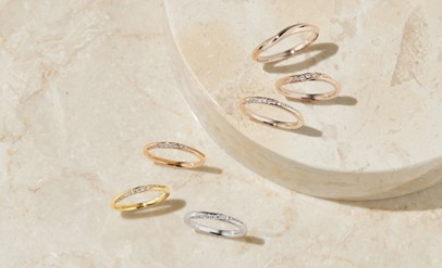 未来を誓うおふたりの想いをやさしく照らし出し、あたたかな輝きで指もとを彩ります。