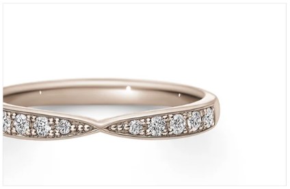 ナチュラルな色味で、着け心地も相まって指に溶け込むようにしっくりとなじみます。やわらかで淡い色味のためダイヤモンドが素材の色を拾いにくく、その澄んだ輝きをより一層引き立たせます。