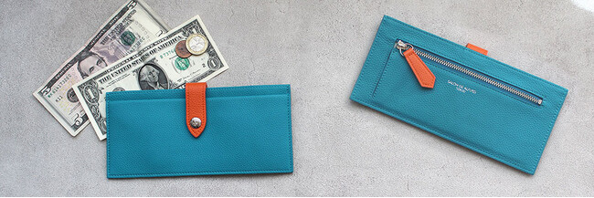 ブランドのルーツが染色工房であるサロンドアルファードは、これまで色に強いこだわり持って素材を選定してまいりました。特に、リアルレザーとしては珍しい、ゴールドやシルバーといった煌めきのあるレザーを採用した財布は、運気UPを意識したお客様から支持され続けておりますが、今回は仕事・健康・恋愛運など、目標や欲しい効果に合わせ、運気UPを意識した5色を厳選。素材には、スペインにある老舗タンナーのカーフレザーを採用。お守りのように毎日一緒に過ごせることを大切にしたスリムなデザインで、持ち運びやすさと実用的な収納性を兼ね備えています。