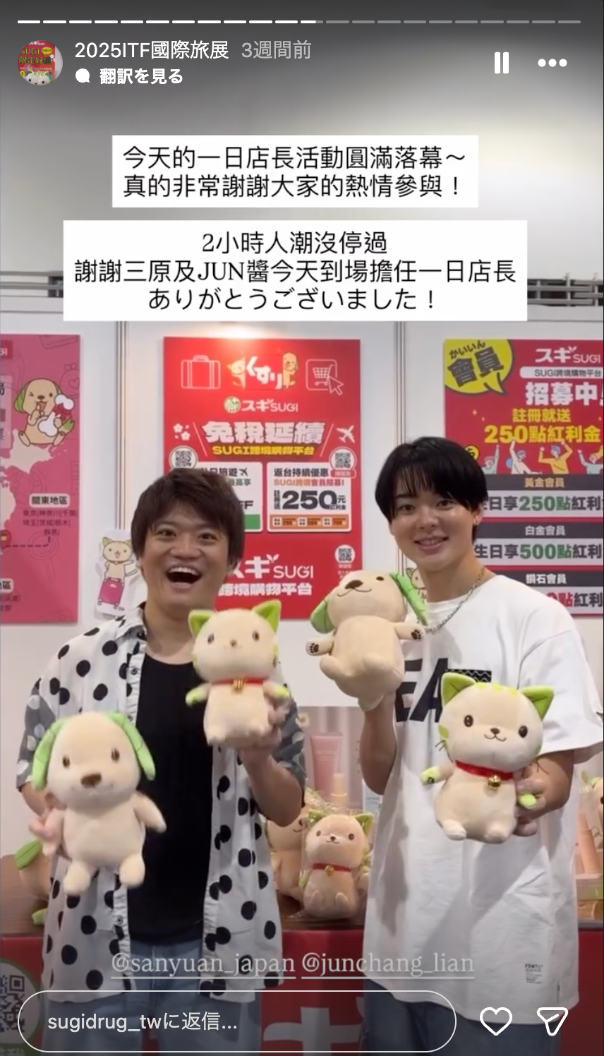 CAPSULE所属の人気クリエイター「三原JAPAN(登録者150万人超)」をブースへ招待し、一日店長企画を実施いたしました。三原JAPANは台湾最大級の日本人YouTuberで、台湾における日本観光・文化ファンが厚く、訪日旅行検討層へ直接アプローチできる強力なタレントです。