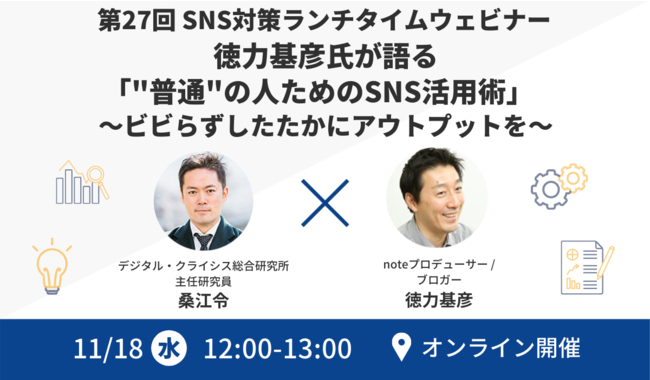 【経営者・広報・マーケター向け 無料オンラインセミナーのお知らせ】徳力基彦氏が語る「“普通”の人のためのSNS活用術」 〜ビビらずしたたかにアウトプットを〜