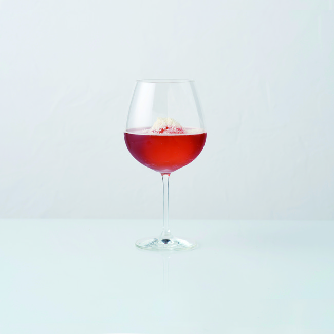 イタリアに馴染のあるカモミール、ドライフルーツ、白ワインやベルモット、そしてカンパリを使用し、日本の国花を使用した伝統的な和菓子である桜餅を再現しました。