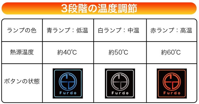 【温度帯】出来るだけ高い温度になるように設計し、3段階の温度設定により、使用環境に合わせてカスタマイズできます。
