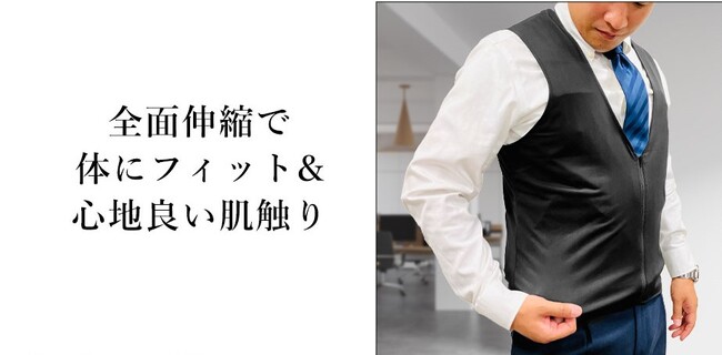「温泉のような心地よい温かさを提供すること」をコンセプトとしたインナータイプの電熱ベスト。薄くて、軽い。身体にフィットするから温かい。