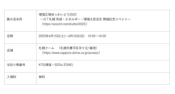『環境広場ほっかいどう2023』(札幌ドーム)に出展