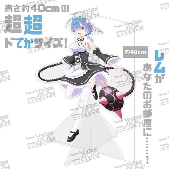 『Re:ゼロから始める異世界生活』より、高さ40cmという超超ドでかサイズなので、レムの存在をしっかりと感じられる「【完全予約限定品】レム ドデカアクリルスタンド L」をはじめ、「エミリア オールプリントTシャツ」、「レム ゼロから 甚平」「レム フルグラフィックドライパーカー」など新グッズが二次元コスパから登場。