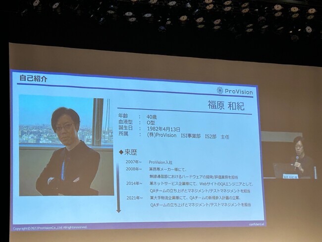 株式会社ProVision(横浜本社:神奈川県横浜市、社長:佐藤 瞳、以下:ProVision)社員の福原和紀が、2022年10月12日(水)に開催された「JSTQB カンファレンス in 2022 Autumn」に登壇しましたので、お知らせいたします。