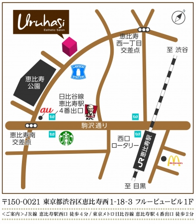 アクセス:東京メトロ日比谷線 恵比寿駅4番出口 徒歩2分、JR恵比寿駅 西口 徒歩4分