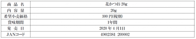 株式会社にんべん(東京都中央区、代表取締役社長 高津克幸)は、2020年4月1日より、にんべんNIHONBASHIシリーズから、20g詰めの「花かつお」を新発売いたします。