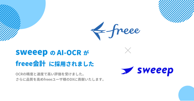 「働くを楽しく」をビジョンに掲げるsweeep株式会社(本社:東京都渋谷区、代表取締役:村山毅、以下当社)は、独自開発したOCRエンジンが、freee株式会社(本社:東京都品川区、CEO:佐々木大輔、以下「freee」)の請求書OCRエンジンとして正式に採用されたことをお知らせします。これにより、当社サービスをご利用のお客様だけでなく、freee会計の法人プロフェッショナルプラン以上をご利用のお客様にも当社の高精度なOCR技術を体験いただけることになります。