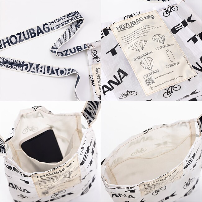 第1弾は朝日放送グループホールディングス株式会社が包括連携協定を結んでいる京都府亀岡市と繋ぎ合わせ、同市を拠点に活動している「HOZUBAG」に注目。ユーズドパラグライダーを回収、解体し、バッグに作り変えることで地上資源として循環させているブランドで、シグネチャーアイテムの一つであるサコッシュにTREK×ANAのロゴマークを冠し、日頃のサイクリングやショッピング、旅行などにご利用頂ける商品となっています。