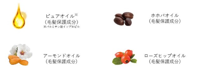 スキンケアにも使用される高品質のピュアオイル 、ホホバオイル、アーモンドオイル、ローズヒップオイルを贅沢に配合。ダメージから髪を守りながらしっかりと染め上げます。
