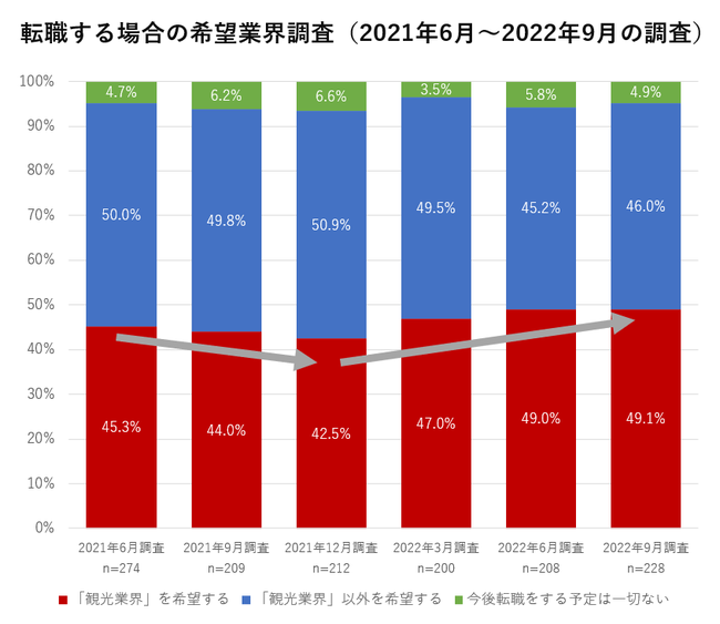 転職時の「観光業界離れ」が底を打ったと思われる。