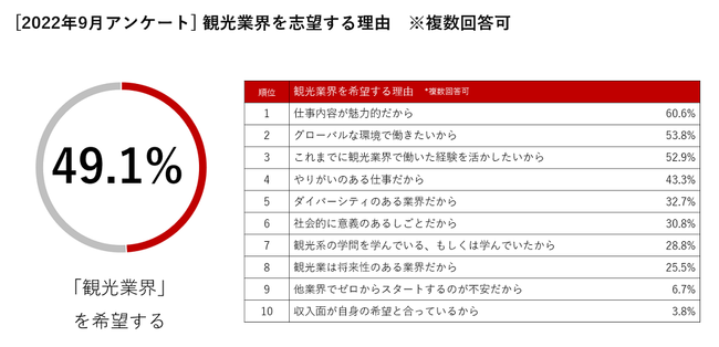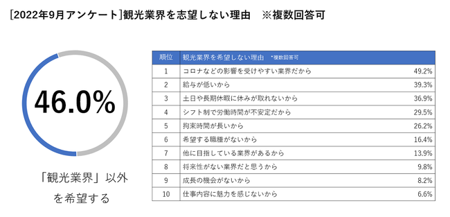 観光業界の採用ニーズはコロナ前を上回るまで回復も、求職者の「観光業離れ」と「海外流出」により深刻な人手不足が到来【観光業界で働くことへの意識調査】