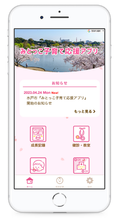 みとの子どもたちが元気いっぱいに成長できるように、子育て世代を地域全体で応援するという想いを込めて「みとっこ子育て応援アプリ」と命名しました。トップページには、地域の皆様にも馴染み深い千波湖の桜や水戸市芸術館のアートタワーが見える水戸市らしさが詰まった、こだわりのデザインでお届けします。