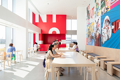 ユニクロと一日中楽しく過ごせる新しい店舗です。外観には、オブジェのような巨大なロゴを配置し、遠くからでもユニクロの店舗であることが分かります。また、ユニクロの商品、サービス、企業としての取り組みなどを、店舗全体を使って表現します。「ずっといたい」「また来たい」と思える、快適で楽しい空間とサービスを提供します。